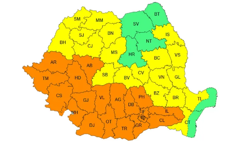 Codul portocaliu va fi valabil în interval de valabilitate: 25 iulie, ora 10 – 26 iulie, ora 10