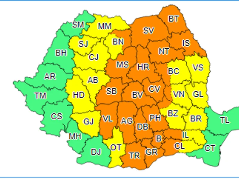 Peste 20 de judeţe şi Capitala se află sub avertizare Cod portocaliu de vijelii şi de precipitaţii de miercuri, de la ora 12:00, până joi la aceeaşi oră. Alte judeţe se află sub Cod galben de instabilitate atmosferică.