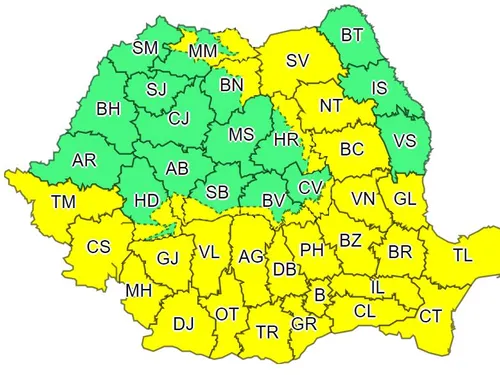 METEO Cod galben de furtuni, în 33 de judeţe şi în București