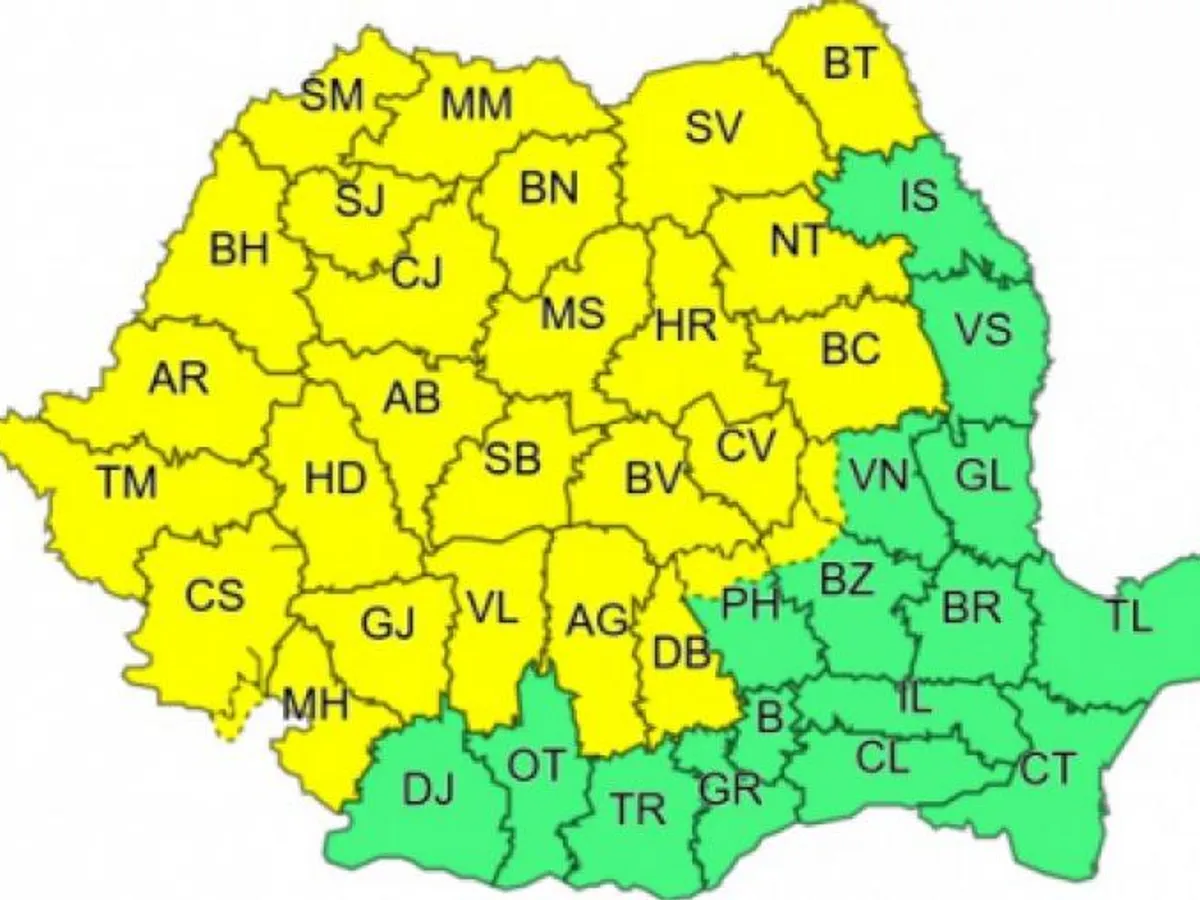 Administrația Națională de Meteorologie a lansat o avertizare Cod Galben de instabilitate atmosferică accentuată valabilă în următoarea perioadă în aproape întreaga țară.
