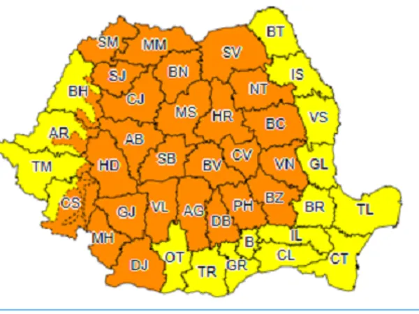 METEO Cod portocaliu de ploi abundente, în aproape întreaga țară