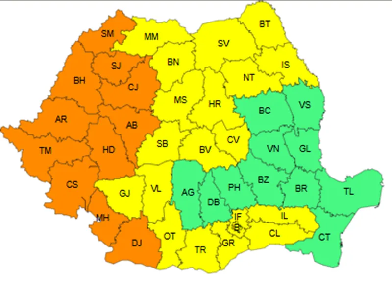 Meteorologiii au emis o avertizare cod portocaliu de caniculă, pentru zilele de sâmbătă şi duminică, între orele 12.00 – 21.00, pentru judeţe din Banat, Crişana, în sud-vestul Olteniei şi în vestul Transilvaniei. Se aşteaptă temperaturi de 37 de grade Celsius.
