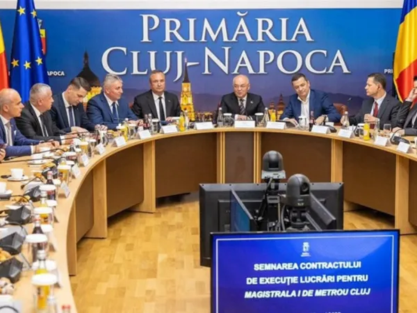 „A fost semnat astăzi contractul pentru construcţia primei magistrale de metrou din Cluj. Este un proiect în valoare de peste 9 miliarde de lei (fără TVA) - finanţat parţial prin PNRR (1,5 miliarde de lei, fără TVA) - care va transforma Municipiul Cluj-Napoca şi comuna Floreşti în localităţi moderne.