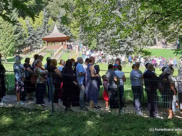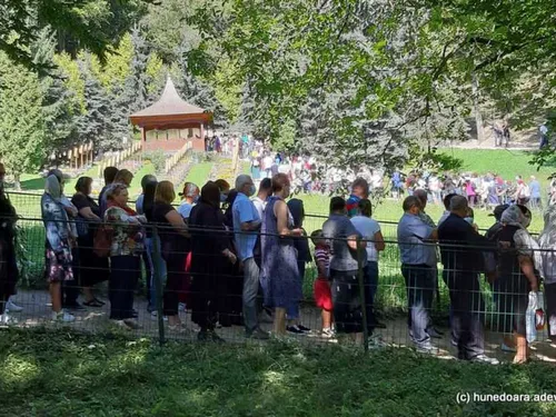Regulile de distanţare socială nu au funcţionat, la sfârşit de săptămână, la Mănăstirea Prislop, din cauza numărului mare de pelerini şi a aglomeraţiei din curtea şi din jurul aşezământului religios.