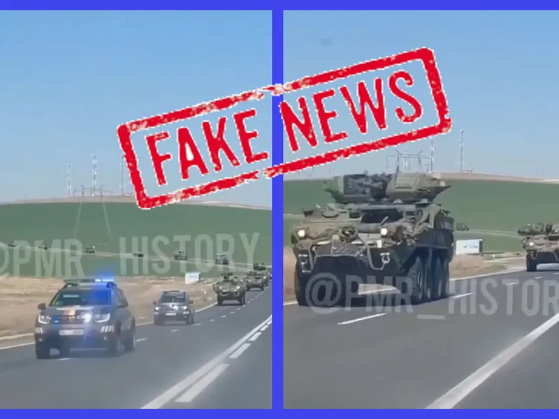 Vă semnalăm o nouă știre falsă, postată pe diferite platforme online în România și în alte țări, care acreditează ideea că un convoi de vehicule militare americane s-ar deplasa din România către Ucraina.