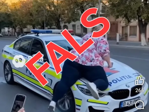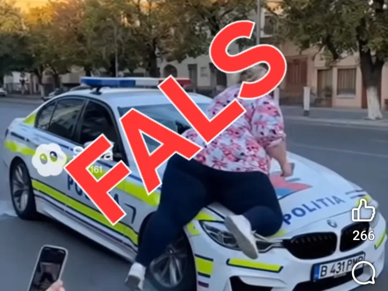 Ministerul de Interne avertizează că imaginile virale cu o femeie care ar distruge un BMW al Poliţiei sunt false, fiind generate cu inteligenţă artificială, iar incidentul nu a avut loc niciodată.