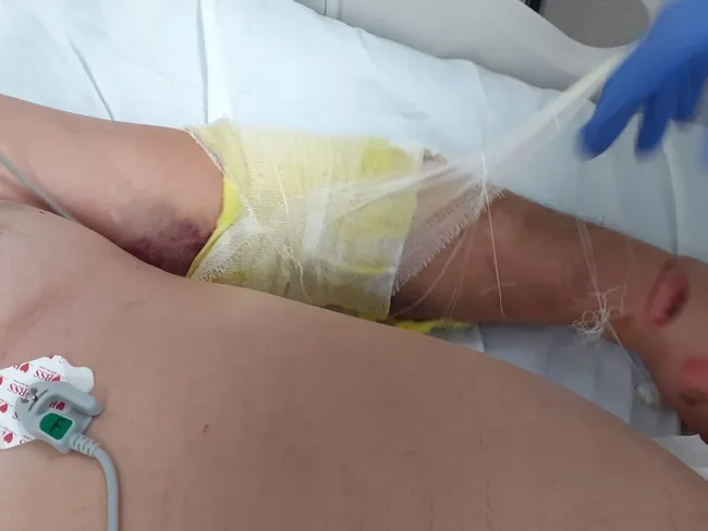 „Pacienții sunt efectiv legați de pat, de mâini și de picioare, în momentul în care nu mai pot respira și încep să se agite, susține Domnul S. Un tratament absolut inuman este probat cu fotografii făcute în ATI, în care se văd mâinile cu pielea ruptă din cauza feșei cu care au fost legați”, a povestit un fost cadru medical pentru Turnul Sfatului.