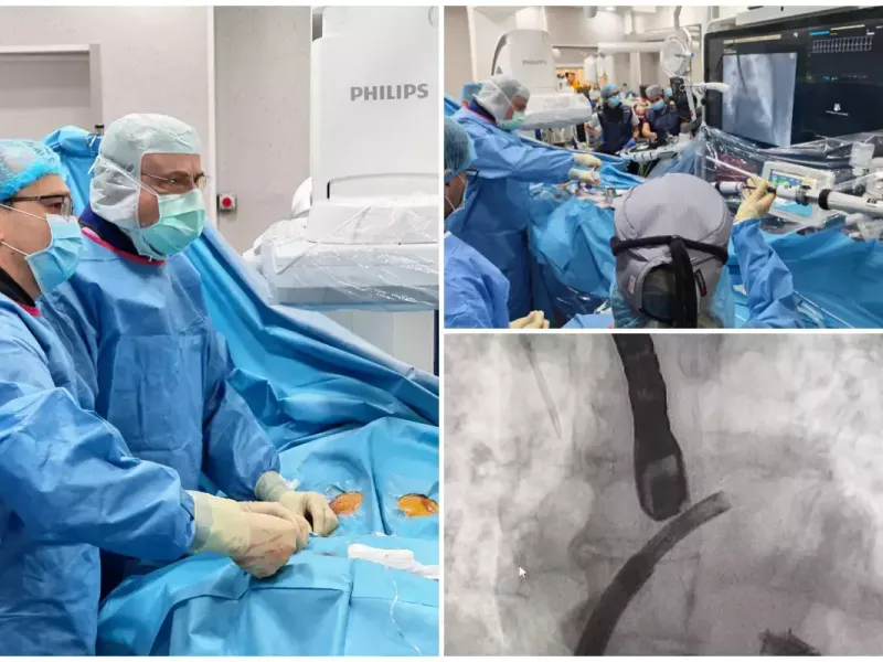 O echipă de medici a Spitalului de Urgenţă Floreasca din Bucureşti, în parteneriat cu un cardiolog intervenţionist polonez, a reuşit o operaţie extrem de rară şi de dificilă. Deşi minim invazivă, intervenţia este considerată foarte complicată.
