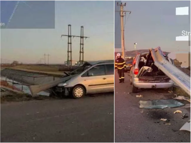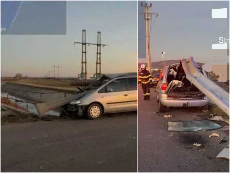 Miracol în România: Șofer scăpat nevătămat după ce mașina a fost străpunsă de un parapet metalic