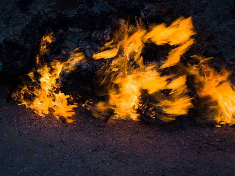 „Muntele care arde”, aflat în peninsula Absheron din Azerbaidjan, a primit acest nume din cauza unui foc care arde neîncetat.