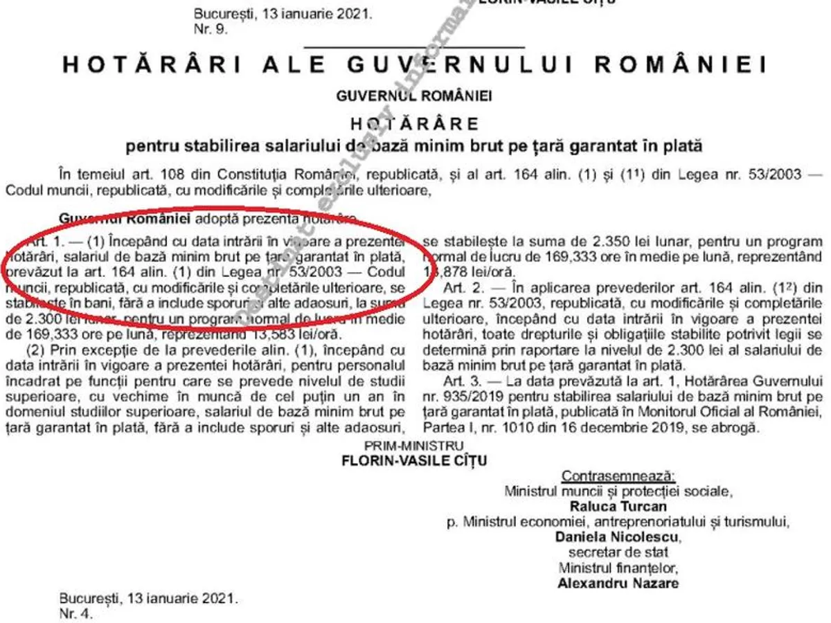 Salariul minim 2021 a fost publicat în Monitorul oficial: 2.300 lei brut. Problema este că se poate aplica de la 1 ianuarie, dar nu neapărat, din caua unei greșeli de redactare.