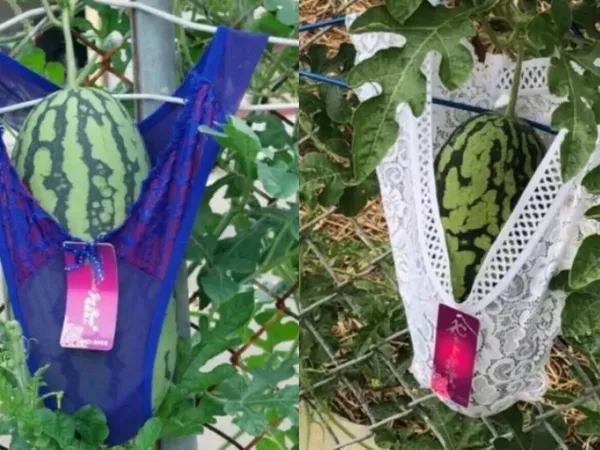 Aparent, chiloții permit fructelor să respire, iar folosirea lenjeriei intime pentru a ridica pepenii din pământ elimină riscul de putrefacție, menținându-i proaspeți.