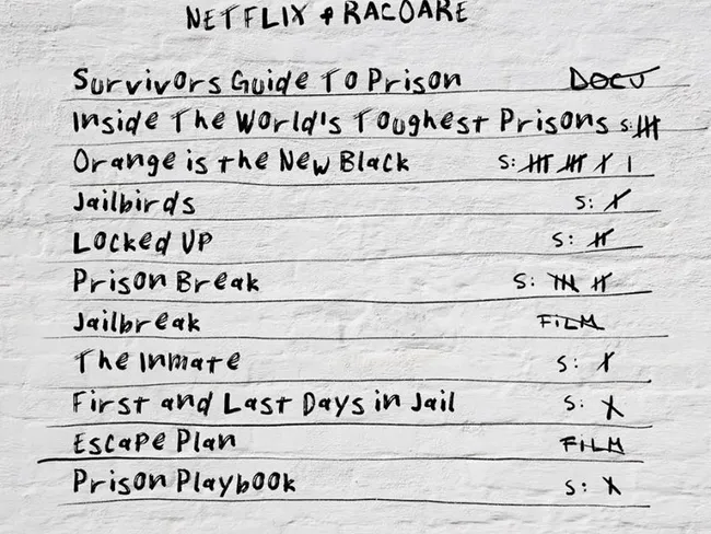 Administratorii pagini au postat o listă de filme artistice și documentare, care au ca temă închisoarea, printre care „Prison Break“, „Escape Plan“, „Survivors Guide to Prison“ și „Inside the World’s Toughest Prisons“.