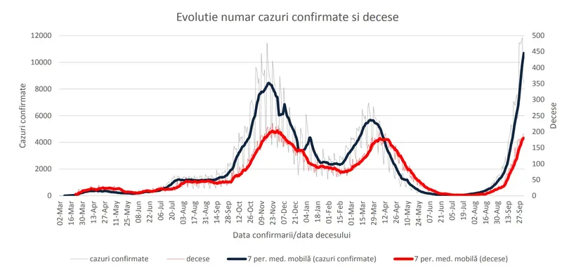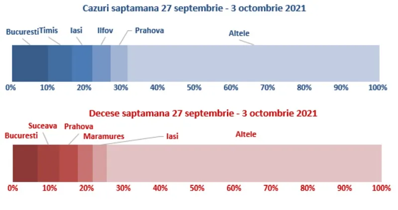 Situația COVID pentru săptămâna 27 septembrie – 3 octombrie 2021 arată astfel, conform raportului INSP: