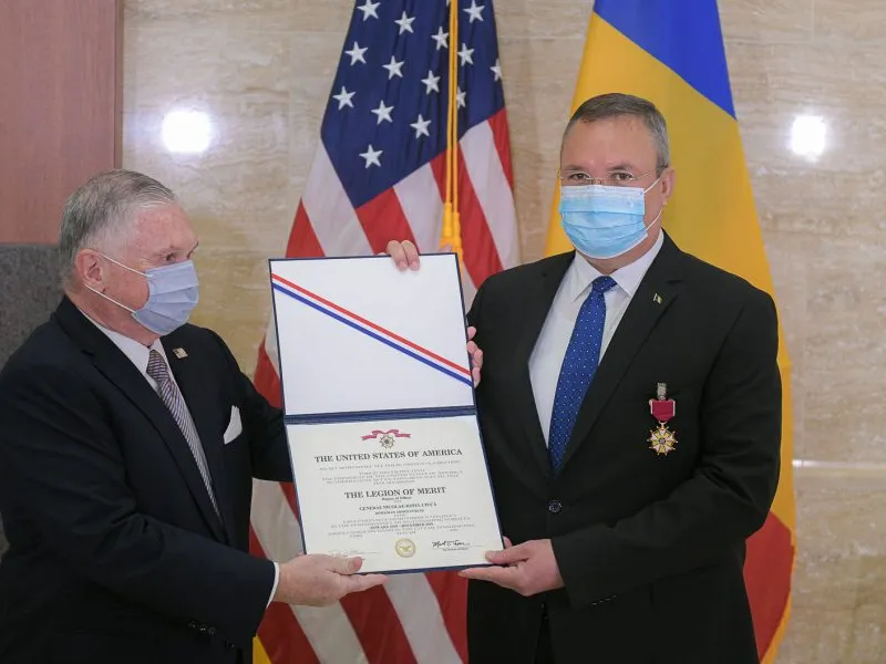 Premierul interimar Nicolae Ciucă a fost decorat, marţi, cu Legiunea de Merit pentru activitatea de şef al Statului Major al Apărării, în cadrul unei cermonii care a avut loc la sediul Ambasadei Statelor Unite ale Americii.