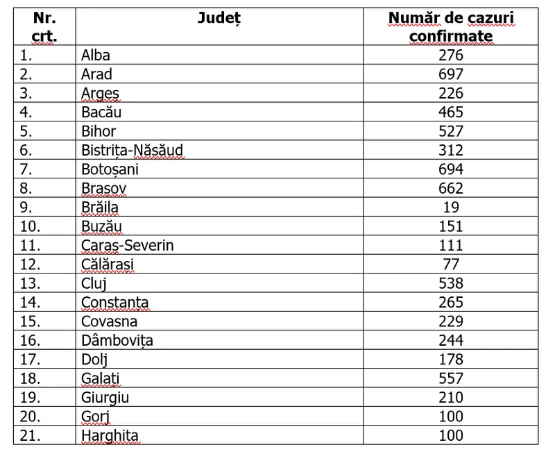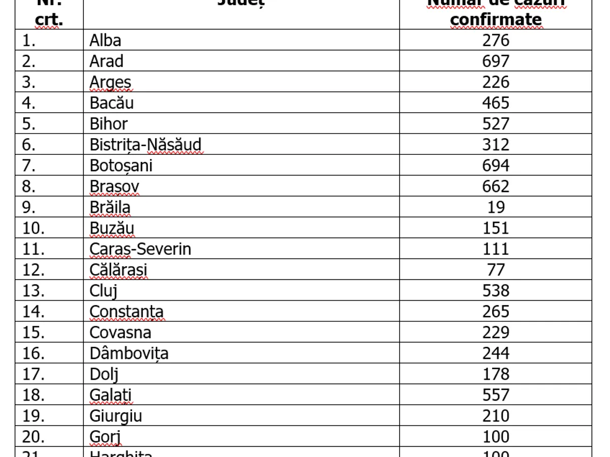 Situația infectărilor pe județe