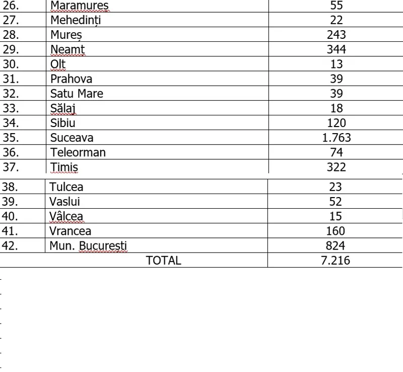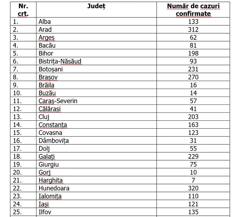 Numărul cazurilor confirmate, pe județe