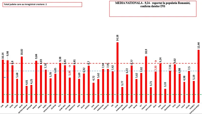 Doar două județe raportează incidență COVID în creștere: Covasna și Sălaj