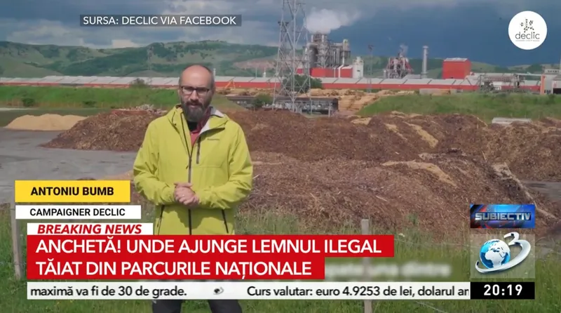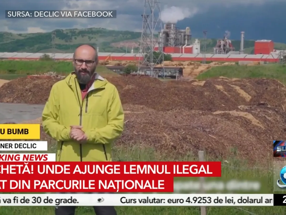 Moderatorul Răzvan Dumitrescu a prezentat descoperirile lui Bumb sub titlul "Anchetă! Unde ajunge lemnul ilegal tăiat din parcurile naționale".