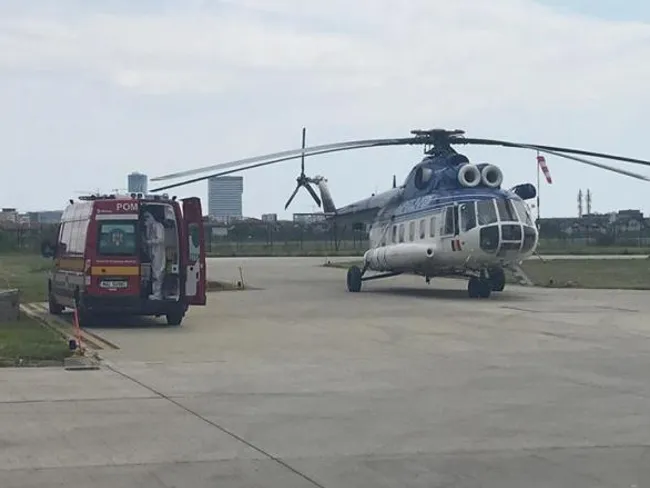 Transportul pacientului, intubat și ventilat mecanic, se va realiza cu un elicopter de tip Mi-8 aflat în dotarea Inspectoratului General de Aviație al MAI, format din echipaj medical UPU-SMURD București, precizează DSU.