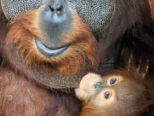 Un urangutan mascul a preluat un rol neobișnuit pentru specia sa, la Grădina Zoologică din Denver. După moartea femelei, luna trecută, masculul a început să se ocupe de puiul său.