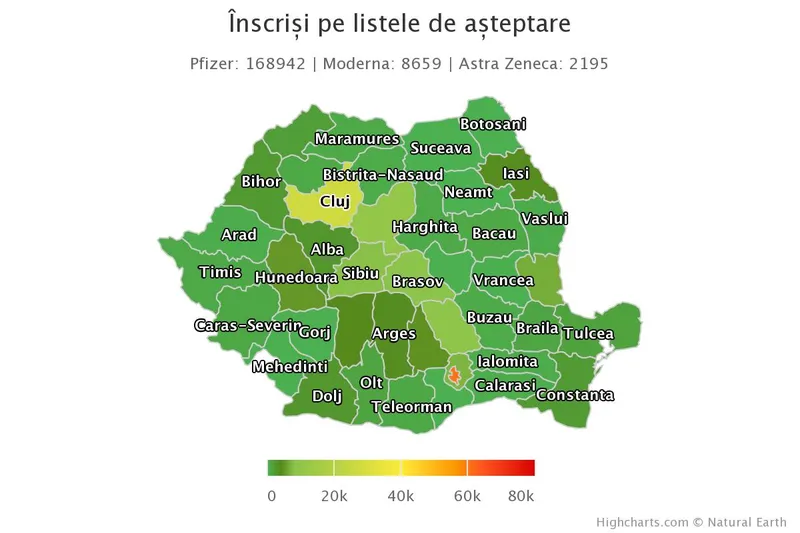 În schimb, pe liste sunt înscriși 179.796 de oameni care vor să se vaccineze, dintre care 168.942 cu Pfizer, 8.659 cu Moderna și 2.195 cu AstraZeneca.