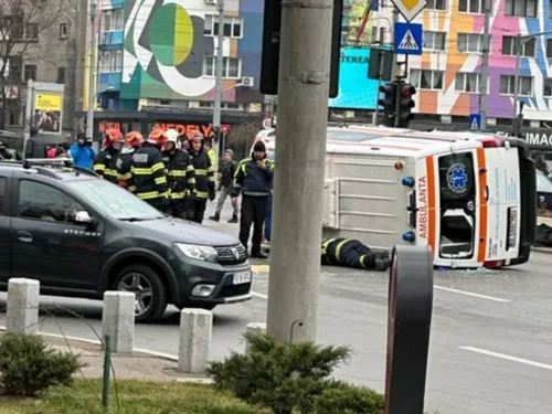 "În jurul orei 11:25, conducătorul unei ambulanțe SABIF care se deplasa pe Bd. Dimitrie Cantemir către pasaj Unirii, având în functiune semnalele acustice și luminoase, la intersecția cu Bd. Mărășești a intrat în coliziune cu un autovehicul. În urma impactului, ambulanța s-a răsturnat pe lateral", au transmis autoritățile.