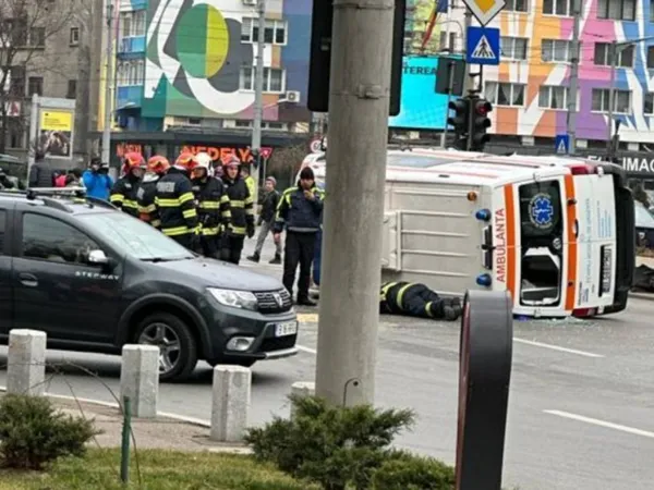 Acesta a fost unul puternic pentru că ambulanța a fost răsturnată pe o parte. Traficul în zona Pasajul Unirii, unde a avut loc accidentul, a fost restricționat în zonă.