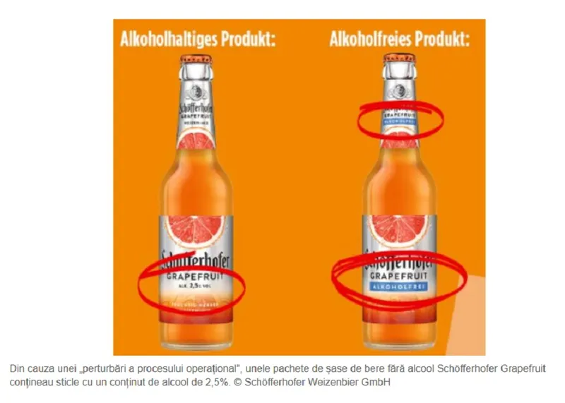 Acesta a fost cazul pachetelor individuale de „Schöfferhofer Weizen-Mix Grapefruit Alcohol-Free” cu data de expirare iulie 2026. Pachetele de șase recipiente au fost vândute în supermarketuri începând cu 21 iulie 2025, în Germania.