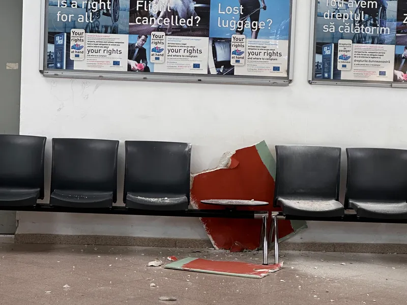 O bucată din tavanul Aeroportului Sibiu a căzut lângă pasageri. Nimeni nu a fost rănit