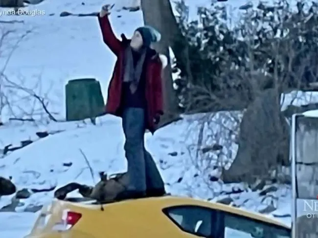 Spectatorii au fost șocați când o femeie care conducea un autoturism pe un râu înghețat din Canada s-a izbit de gheață și a plonjat în apa înghețată. Șoferița s-a oprit să își facă un selfie pe partea din spate a mașinii sale care se scufunda.