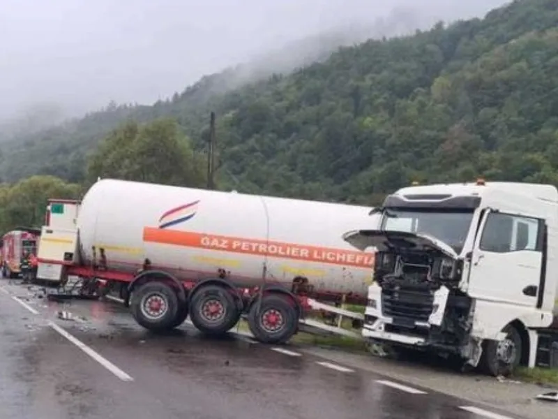 O cisternă GPL care aparținea firmei ce deţine şi staţia din Crevedia s-a răsturnat pe Valea Oltului