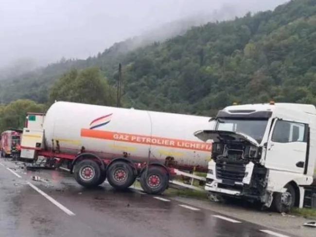 Accidentul a avut loc în localitatea Racoviţa de pe Valea Oltului. Şoferul cisternei cu GPL se îndrepta către Sibiu şi a lovit un TIR plin cu medicamente care circula din sens opus.