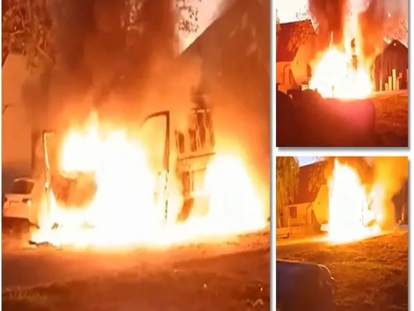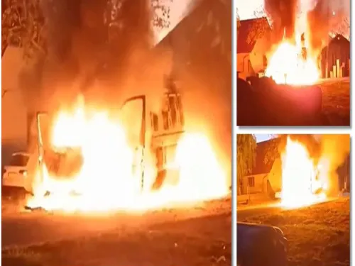 O dubă cu pâine s-a făcut scrum în Timiș. Șoferul a ieșit în ultima clipă din mașină