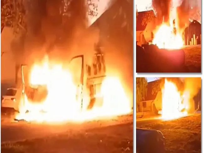 O dubă care transporta pâine a ars ca o torţă pe o şosea din localitatea Teremia Mică, județul Timiș. Șoferul a observat fumul dens care a pătruns în maşină și a decis să oprească de urgență.