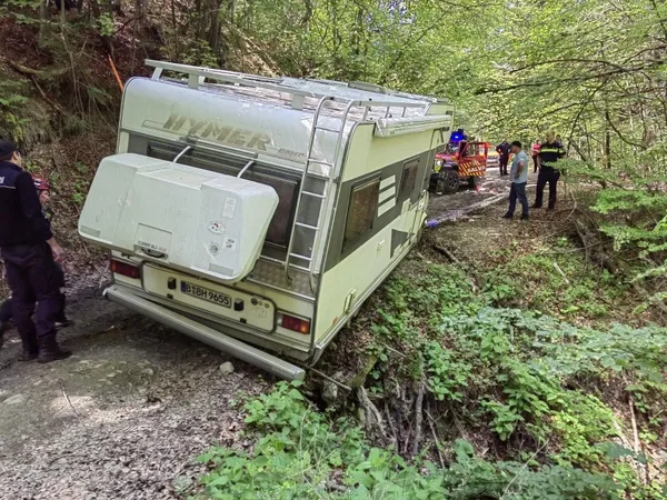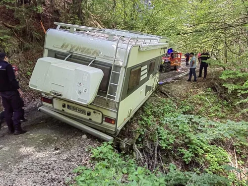 Salvamont Neamț a anunțat o intervenție dificilă: recuperarea unei rulote care a intrat pe un drum forestier aflat la marginea unei prăpastii. Se putea produce o tragedie.