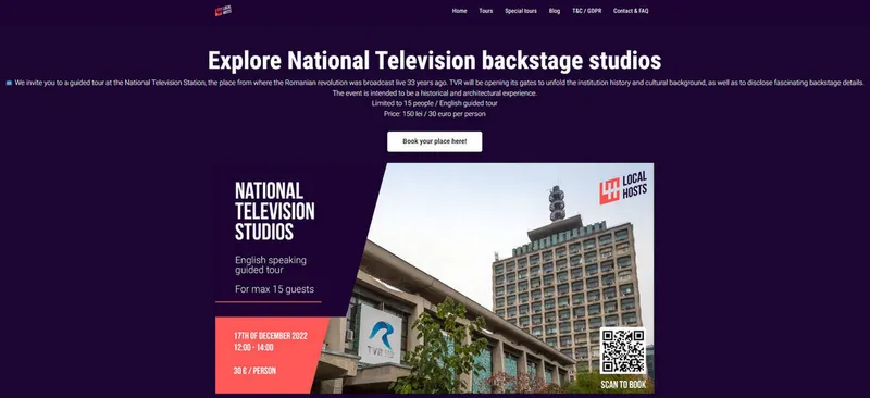 „Vă invităm la un tur ghidat al Televiziunii Române, locul de unde a fost transmisă în direct Revoluția română acum 33 de ani. TVR își va deschide porțile pentru a dezvălui istoria și fundalul cultural al instituției, precum și pentru a dezvălui detalii fascinante din culise. Evenimentul va fi o experiență istorică și arhitecturală”, este anunțul de promovare al „Local Hosts”.