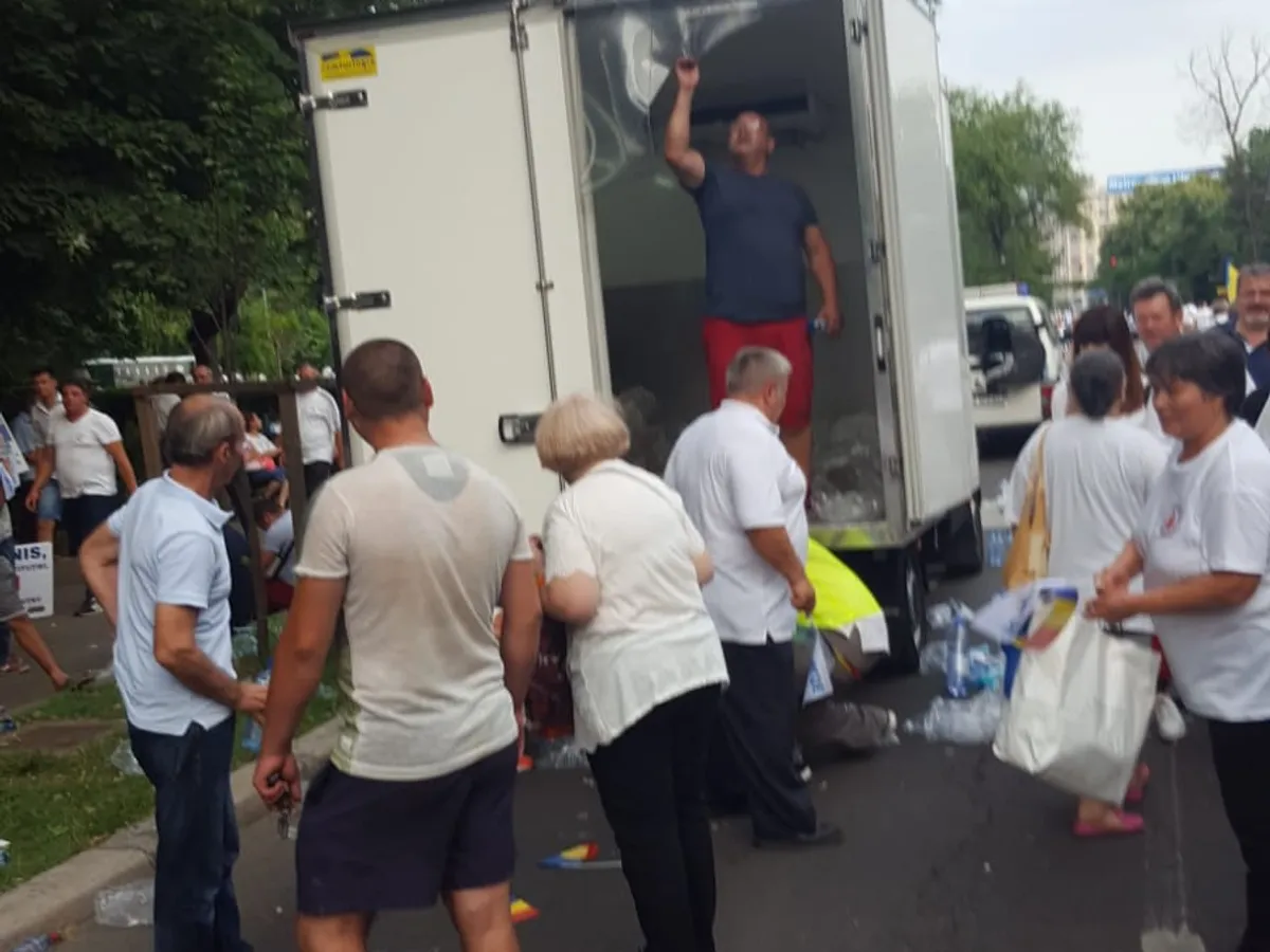 Apa distribuită gratuit la mitingul PSD, din camioanele Josi
