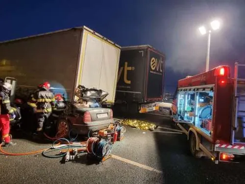 O mașină a intrat sub un TIR pe A1, în apropiere de Nădlac: 3 morți, autotrada blocată