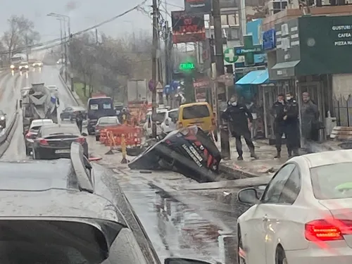 O mașină a Jandarmeriei a căzut într-un șanț, pe șoseaua Fundeni