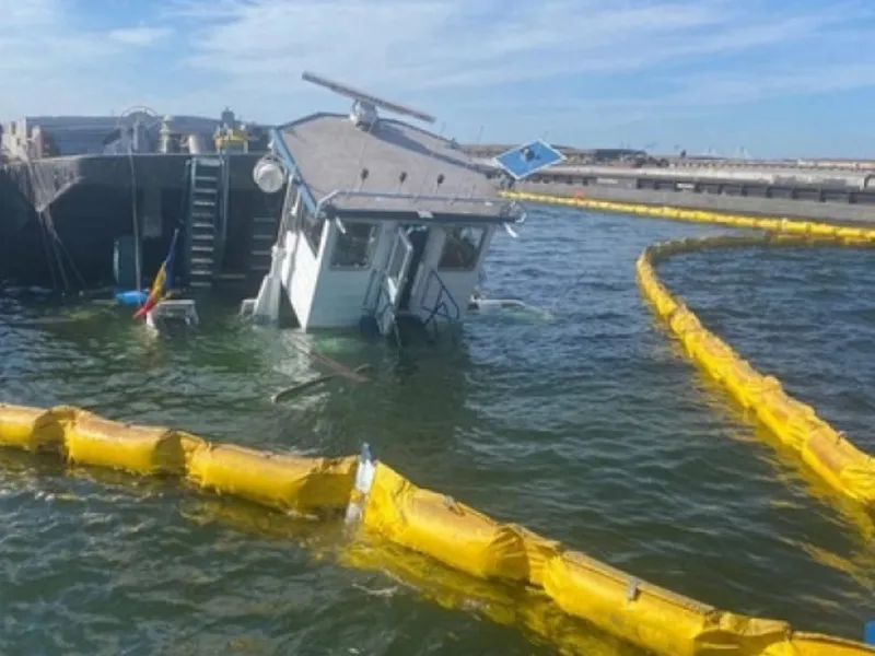 O navă din Cehia s-a scufundat în portul Constanța după o coliziune cu alte nave: 5 membri la bord