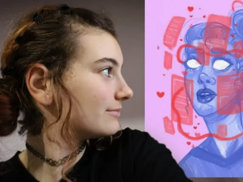 Astfel, desenul cu care a participat la concurs se intitulează "Robot Girl" și face trimitere la dependența de tehnologie.
