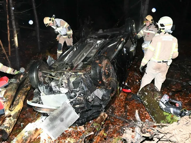 A fost nevoie de două autospeciale și 25 de oameni pentru a reuși s-o descarcereze și s-o scoată din mașina răsturantă pe femeie, relatează krone.at.