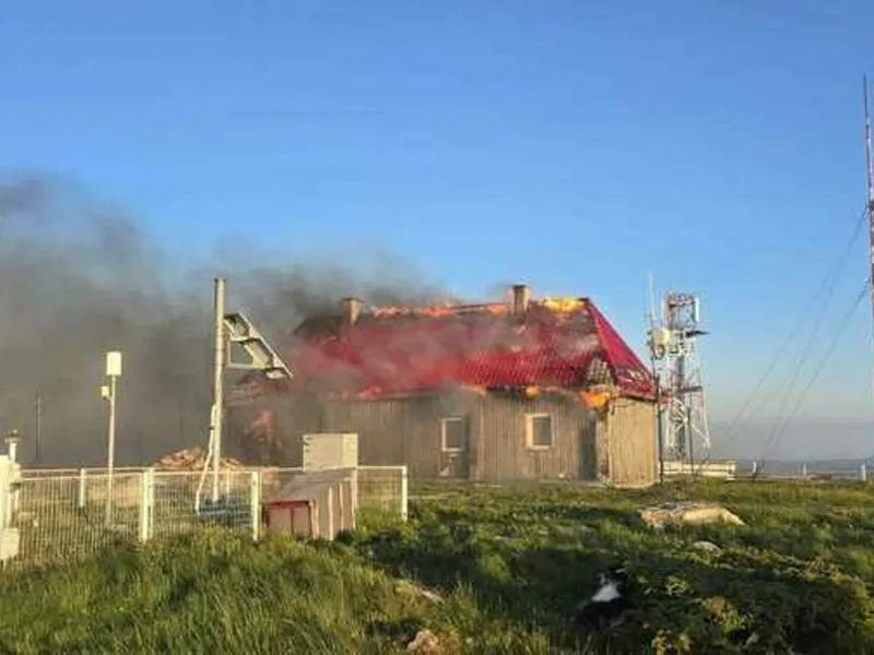 O stație meteorologică și o cabană de pe Vârful Vlădeasa din Cluj au fost cuprinse de flăcări