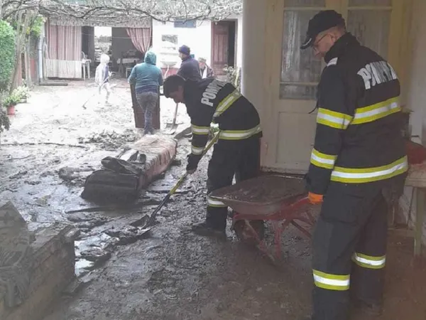 Nu au fost victime, însă casele sunt distruse de mâl și gunoaie. Pompierii intervin pentru îndepărtarea acestora