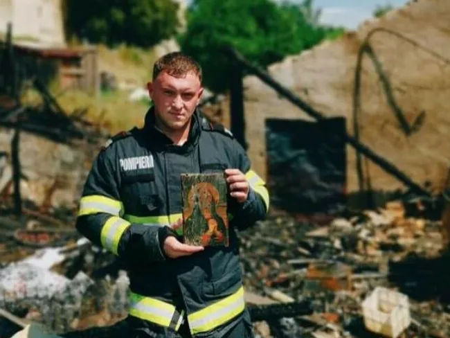O icoană a Maicii Domnului a fost găsită aproape intactă de către pompierii care au intervenit să stingă un incendiu care a distrus o casă din judeţul Bistriţa-Năsăud. Salvatorii spun că icoana se afla într-o zonă în care focul a distrus totul în jur.