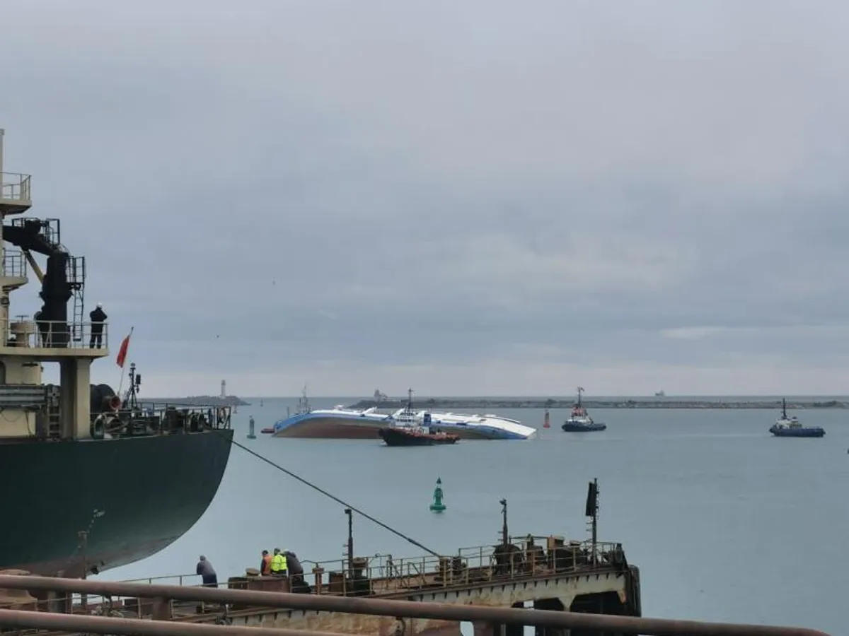 În aceste momente, vasul este jumătate sub apă, însă scufundarea sa a fost oprită.