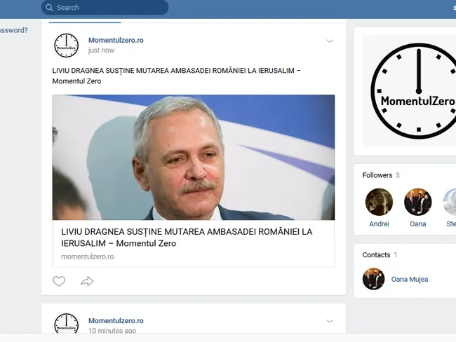 La câteva zile după ce au fost eliminate de pe Facebook, paginile Antifakenews, Destanga și Momentulzero, care distribuiau conținut propagandistic în favoarea PSD, au migrat pe rețeaua de socializare a Rusiei, denumită VKontakte.