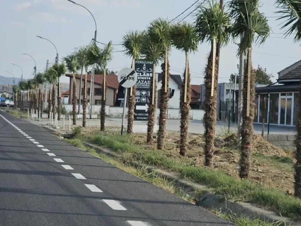 Palmieri pe marginea drumului, într-un sat din România. Localnicii ar fi vrut corcoduși