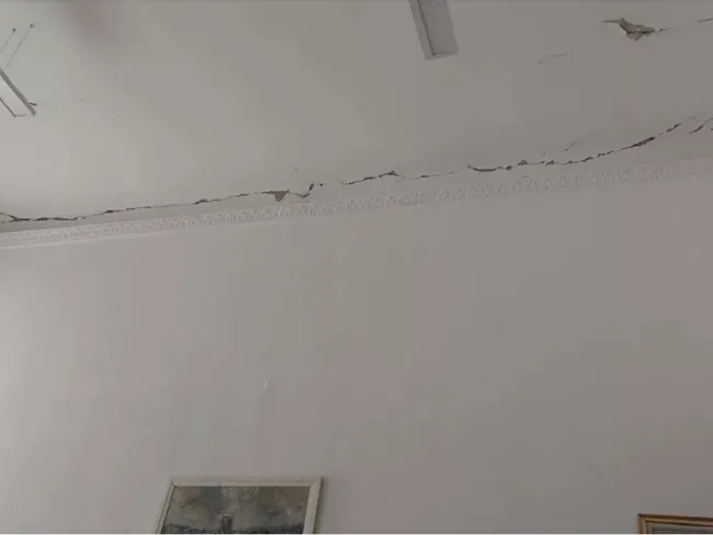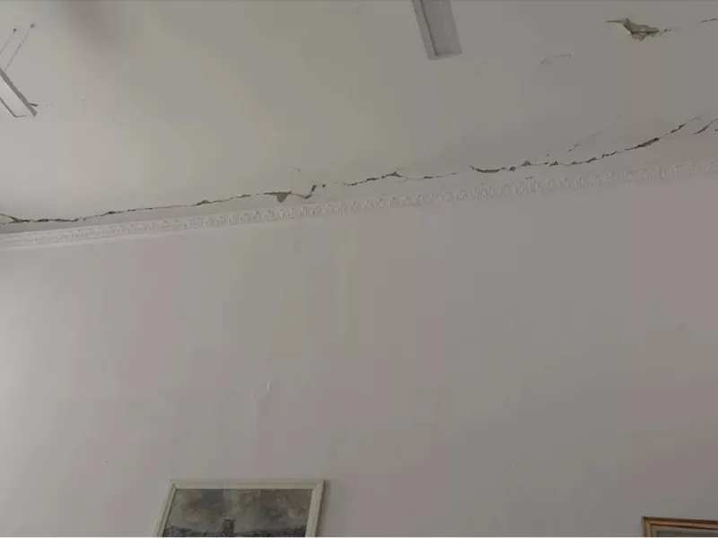 Echipa de experți se afla în podul şcolii, iar în acel moment, tencuiala sălii de clasă de dedesubt, s-a desprins şi a căzut pe banca unui elev.